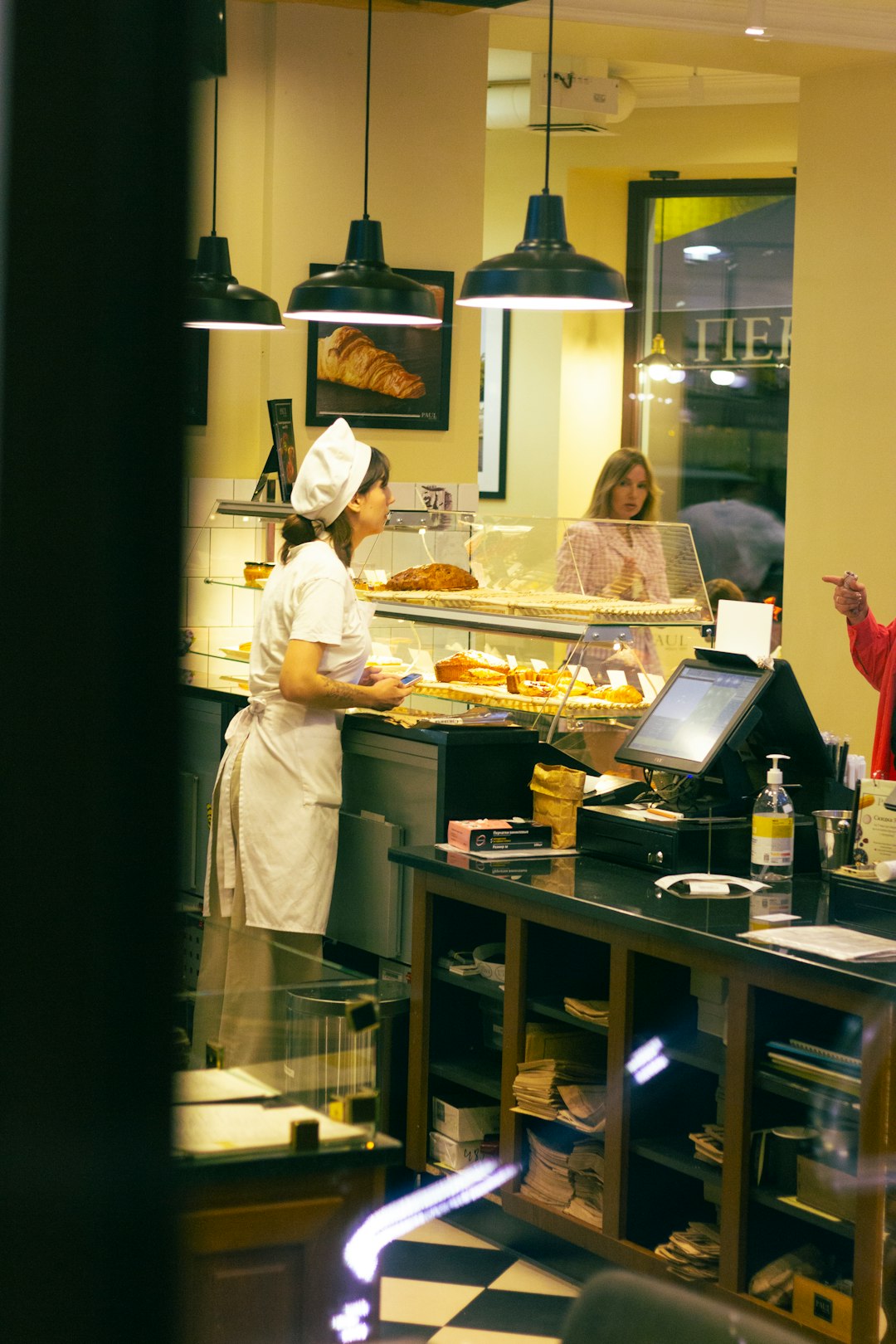 - Helping customers at the counter