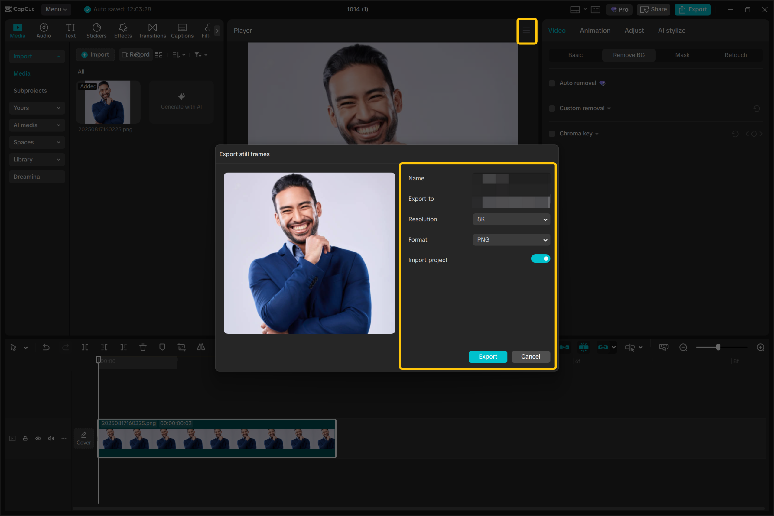 When you are happy with the outcome, you can just click on the “Export still frames” button at the top-right, which will provide you with the option to export. Before you save your image, adjust images such as resolution and file format. CapCut PC enables the process of high-quality exportation of the content so that your headshot can be shiny and polished according to the medium. Now, it is time to place your new business or professional photo on LinkedIn, resume, or company databases without any fear.